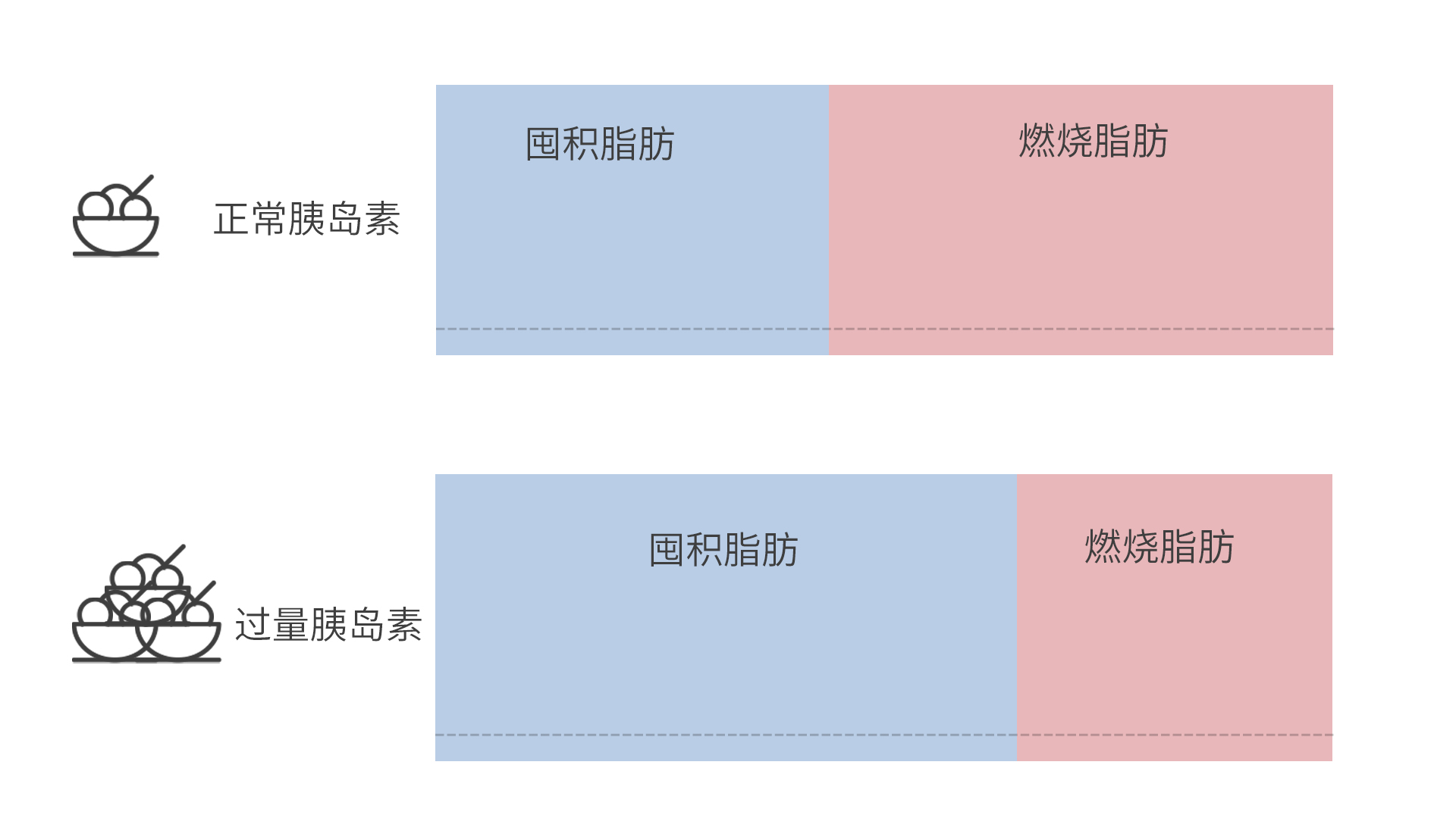 吃主食,最容易刺激血糖,同時胰島素也會大量分泌,長期刺激胰島素分泌,人體細胞對胰島素就會產生抵抗。一旦胰島素抵抗,你再吃主食,你可能就會開始變胖,因為胰島素水平一直高,身體會一直收到儲存脂肪的信號。