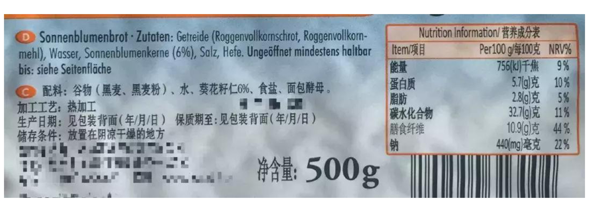 全麥粉(黑麥粉)一定要排在第一位!(強制性)