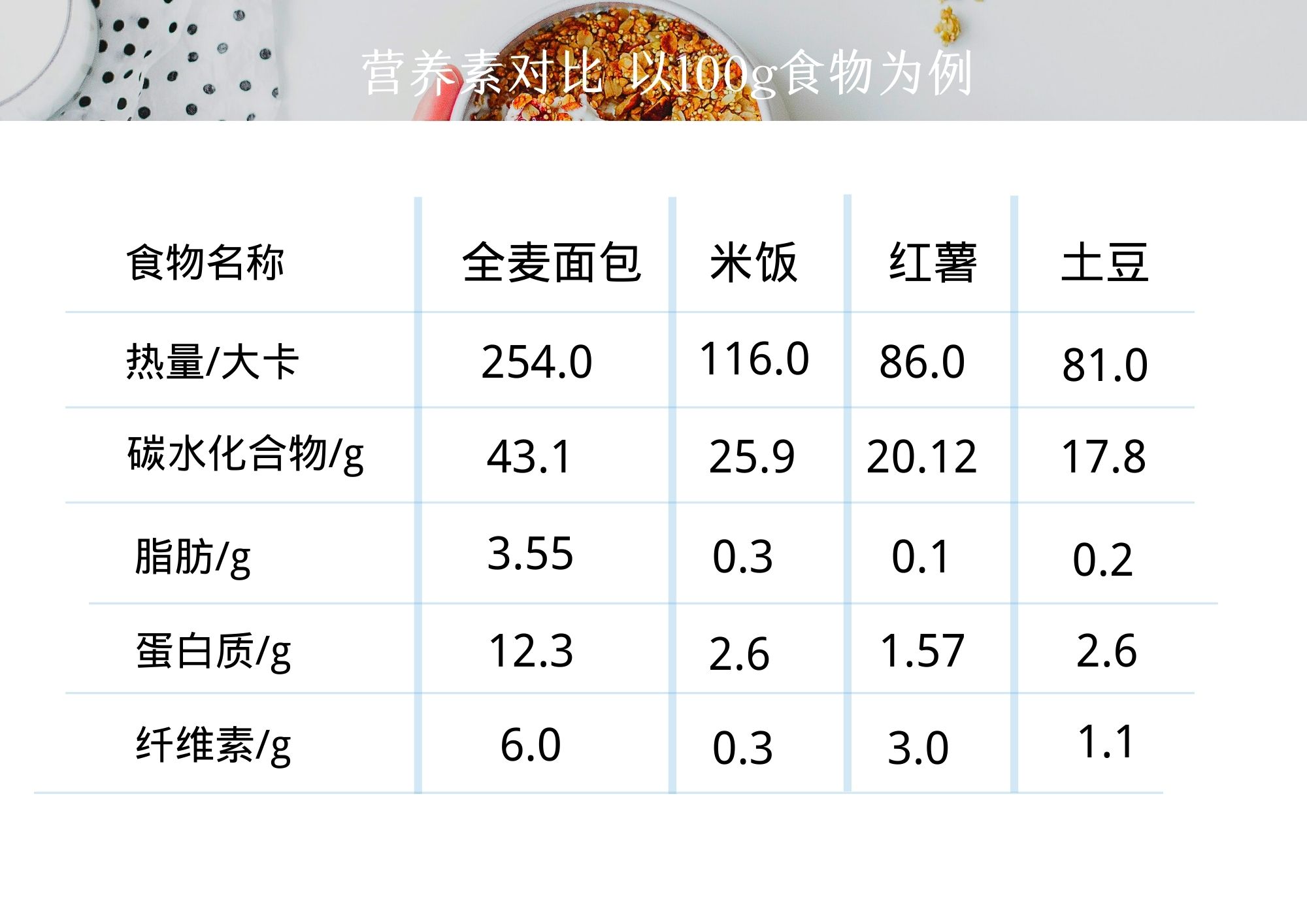 營養元素一對比,全麥面包的優勢就是蛋白質和纖維素含量相對較高。