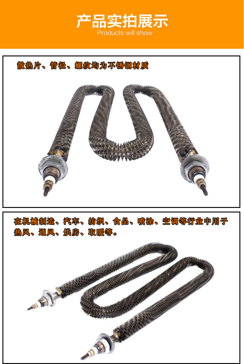 翅片電加熱管適用于烘箱、烘道加熱,一般加熱介質為空氣。