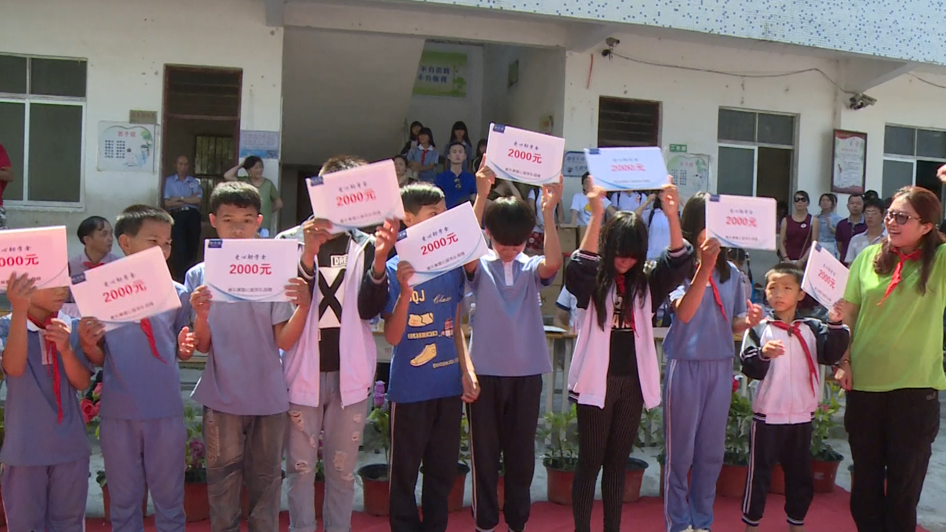當(dāng)天上午,賽樂賽愛心服務(wù)隊將物資裝上車,分乘車輛經(jīng)過4小時跋涉,從廣州抵達肇慶市懷集縣詩洞鎮(zhèn)雙新小學(xué)。