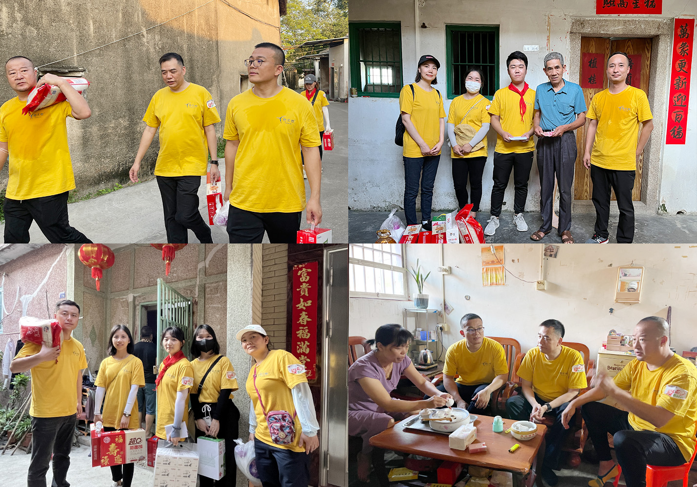 游園活動結束,志愿者們分成十個小隊,扛起生活物資,穿過鄉間小路,到困難家庭去開展慰問幫扶,不但給每戶帶去生活物資及愛心資金,并深入了解孩子們的家庭情況,完成慰問幫扶及心理輔導等工作。