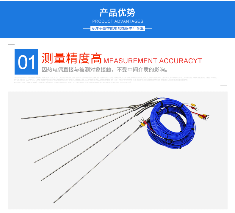 ① 測量精度高 因熱電偶直接與被測對象接觸,不受中間介質的影響。